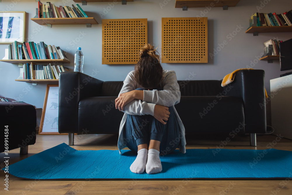 Papier peint Frustrated and tired spoprty woman crying alone at home