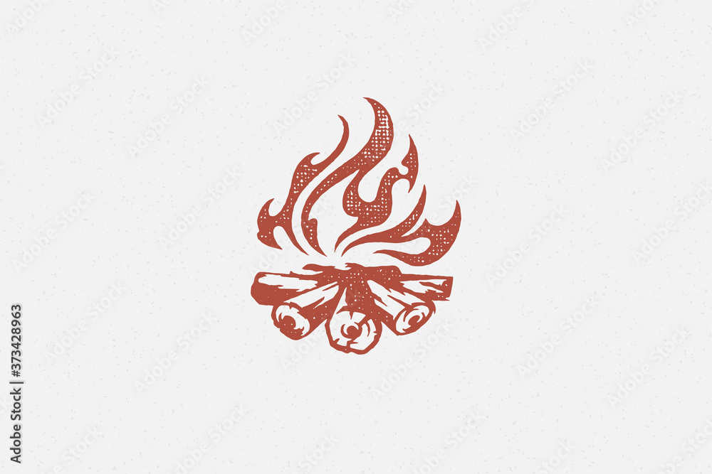 Papier peint Red silhouette of hot campfire burning on logs on campsite hand drawn stamp effect vector illustration