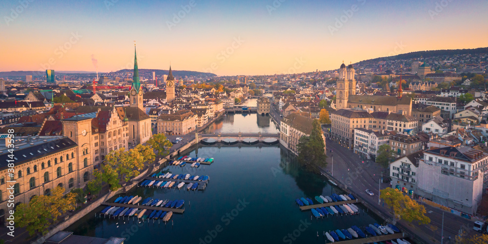 Papier peint Aerial cityscape view of Zurich in autumn, Switzerland