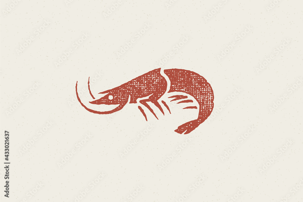Papier peint Shrimp silhouette hand drawn stamp effect vector illustration.