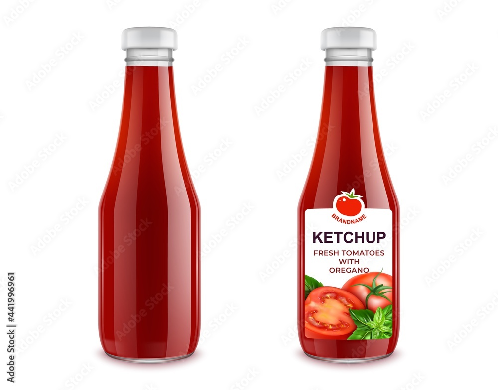 Papier peint Realistic Detailed 3d Red Tomato Ketchup Bottle Set. Vector