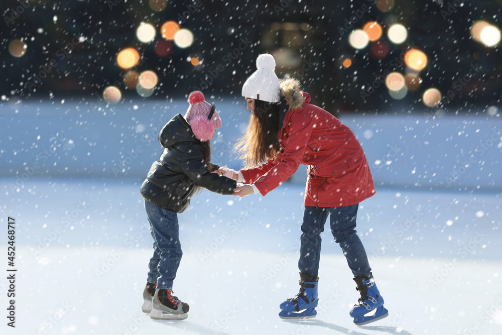 Papier peint Mother and daughter spending time together at outdoor ice skating rink