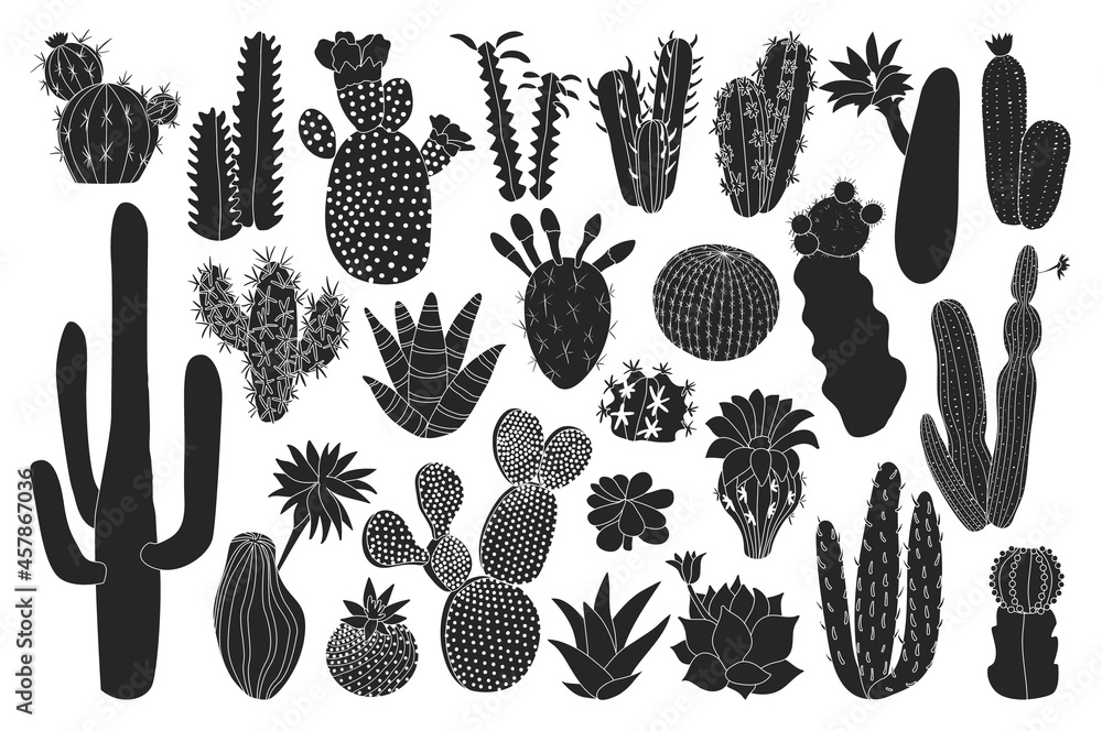 Papier peint Cactus isolated black set icon