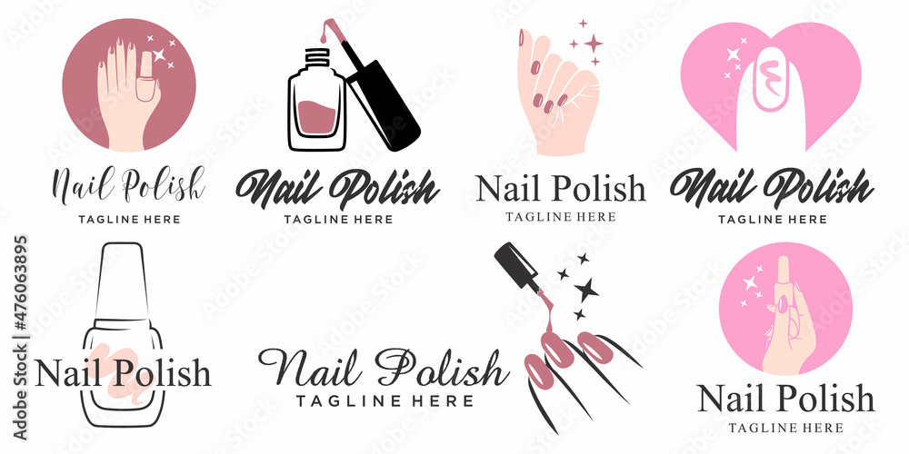 Nail art studio or nail polish icon set logo design template