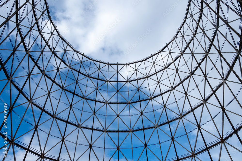 Papier peint Struttura in metallo di un gasometro vista dal basso