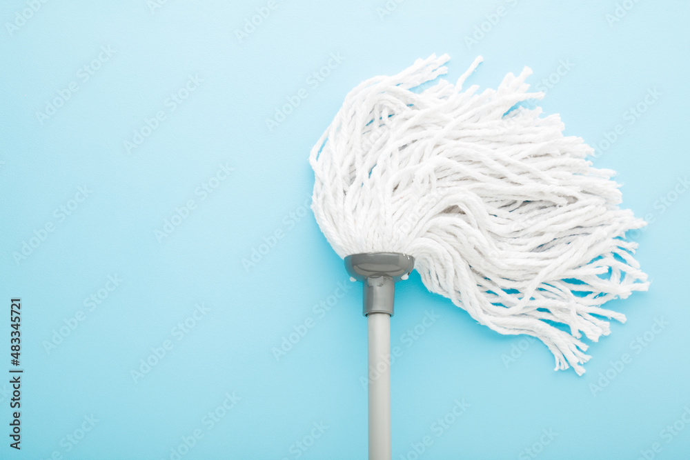 Papier peint New white mop head with stick on light blue background