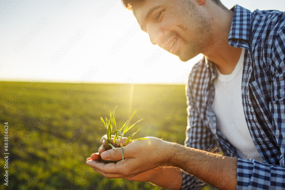 Papier peint Young agronomist checks the quality of the new crop and happy with the results