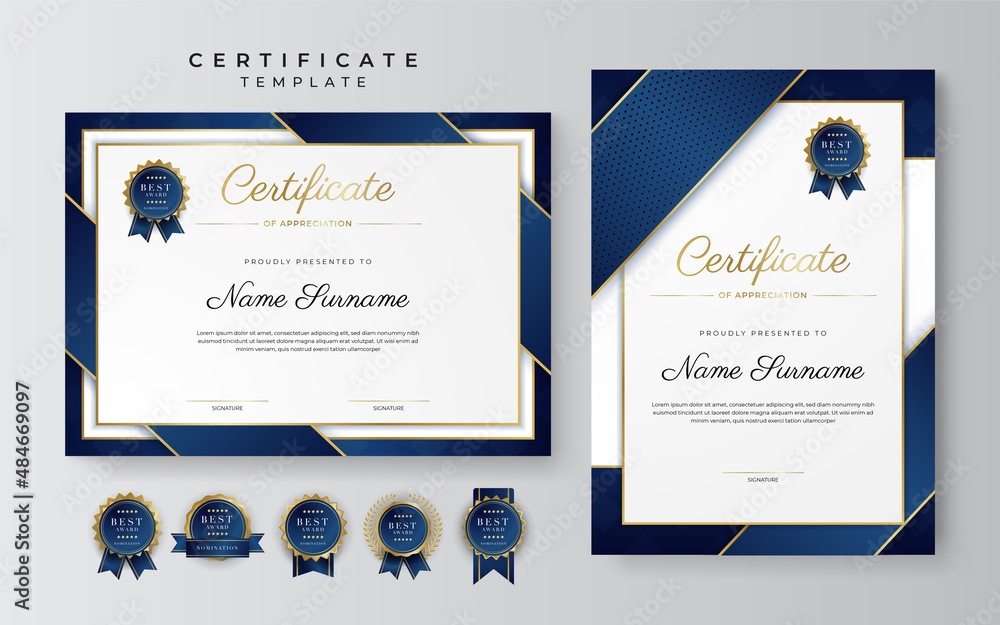 Papier peint Modern blue certificate template and border, for award, diploma, honor, achievem