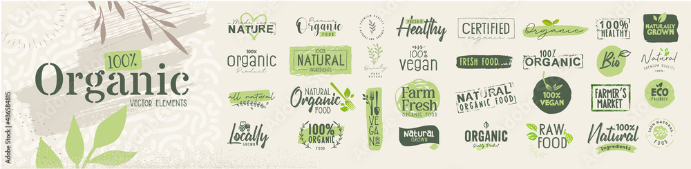 Papier peint Premium quality organic elements for food market, ecommerce, organic products promotion, restaurant, healthy life