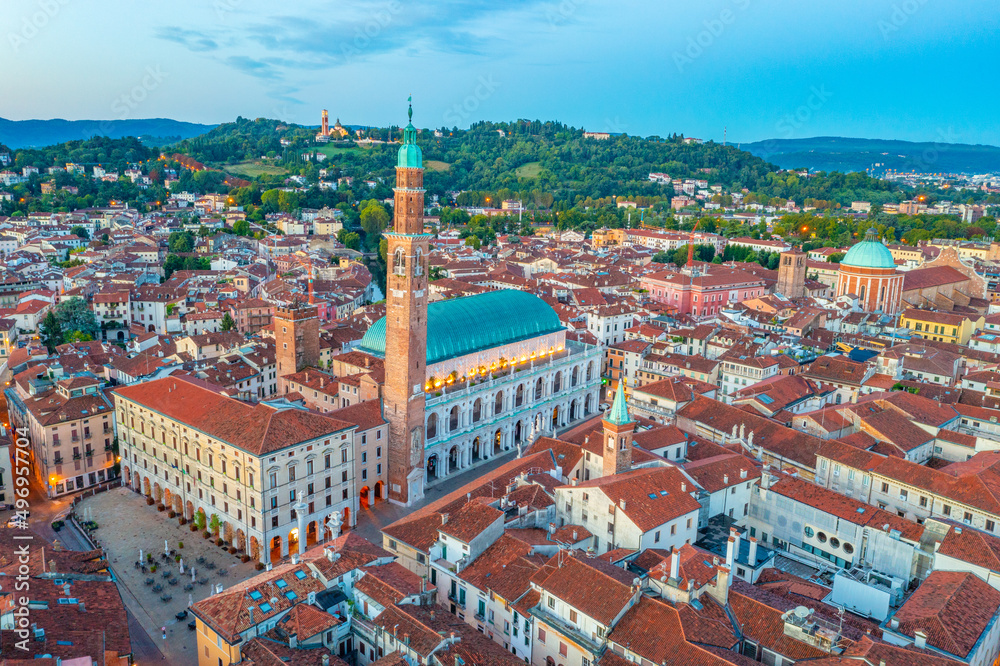 Papier peint Sunrise aerial view of Basilica Palladiana at the Piazza dei Signori square in t