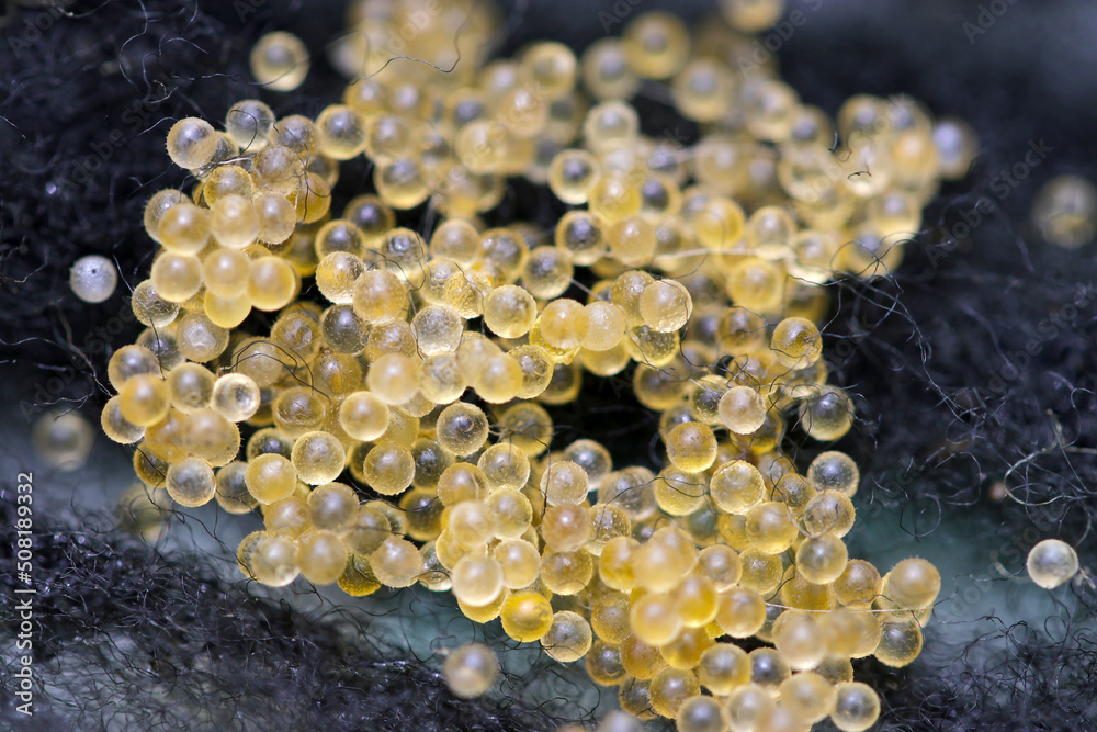 Papier peint Japanese ricefish (Oryzias latipes) eggs born on the artificial spawning bed made of fiber