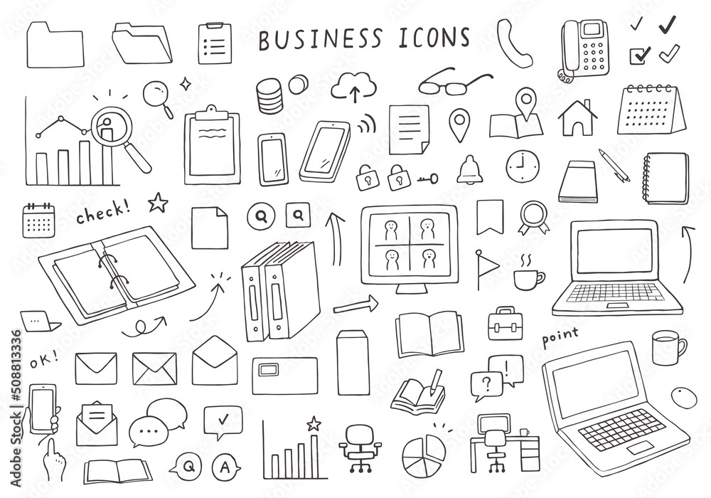 Papier peint 手描きのビジネスアイコンセット詰め合わせ2(モノクロ)