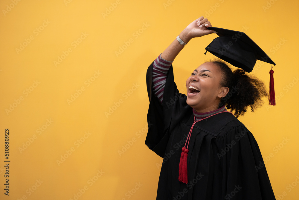Papier peint Pretty African american woman with black hair graduate bechalor degree