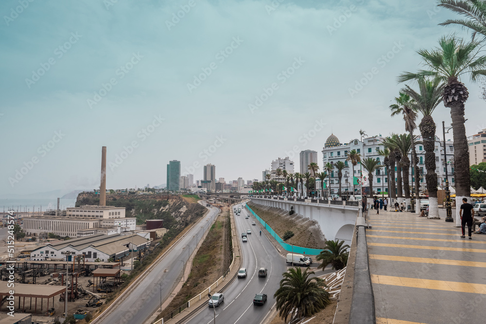 Papier peint View from the Oran beachfront avenue towards palms, road and hotels in the background