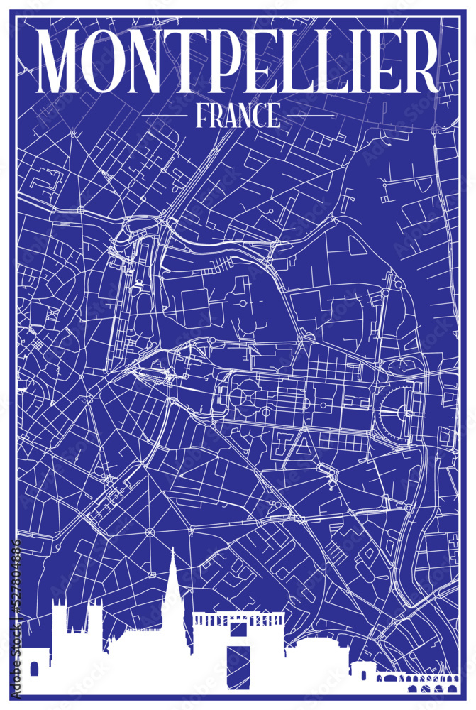 Papier peint Technical drawing printout city poster with panoramic skyline and hand-drawn str