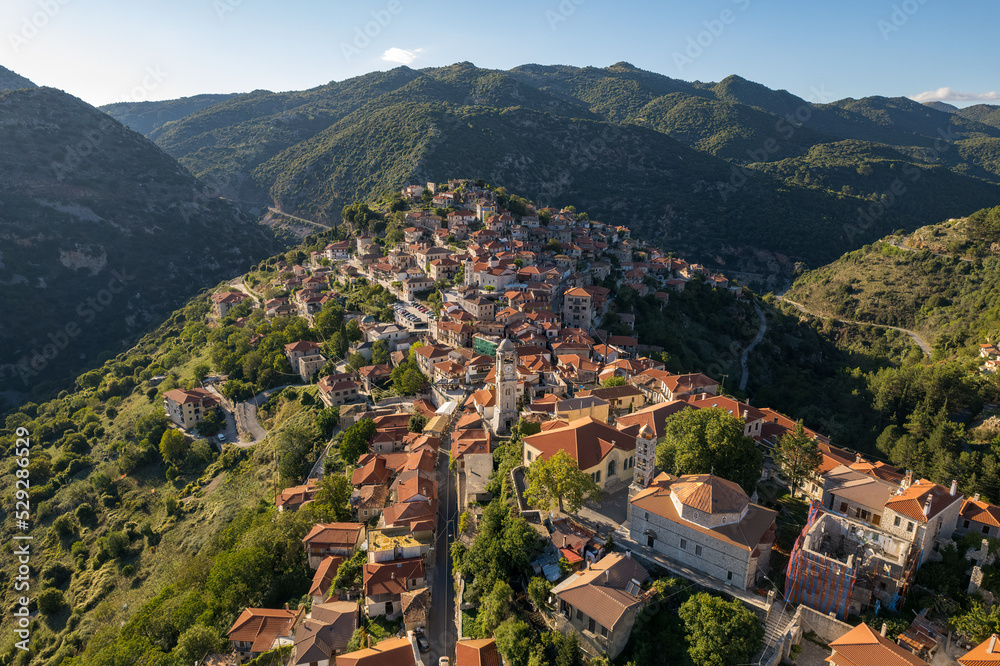 Papier peint Aerial view of the historical village Dimitsana with the traditional houses and