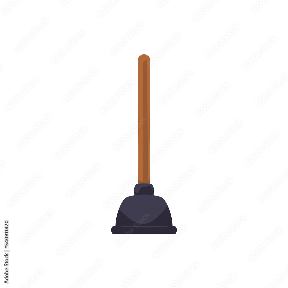 Papier peint Rubber black plunger with brown wood handle flat style