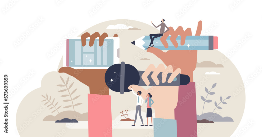 Papier peint Press freedom and media independence for speech rights tiny person concept, transparent background