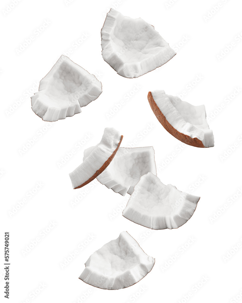 Papier peint Falling coconut, isolated on white background, full depth of field