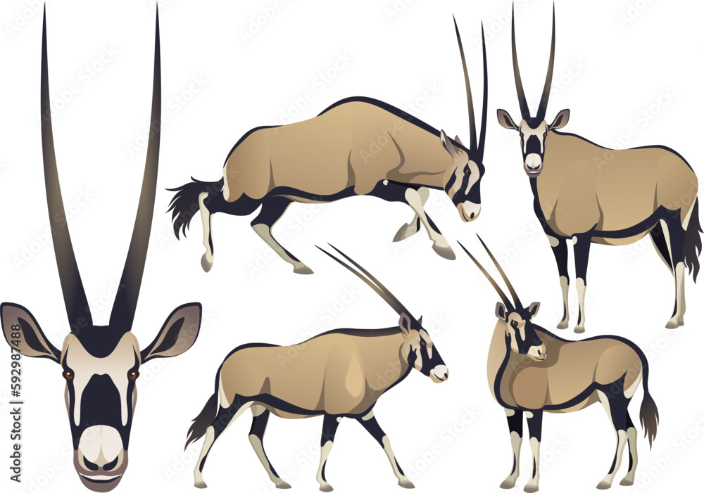 Papier peint realistic african desert wild beast Oryx gazella Hippotraginae animal