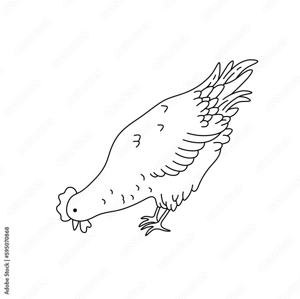 Papier peint Vector isolated one single cute cartoon pecking rooster hen cock standing side v