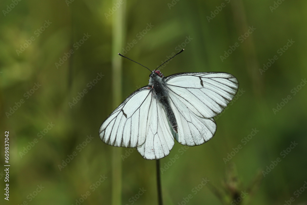 Papier peint A rare Black-veined White Butterfly, Aporia crataegi, nectaring on a wildflower