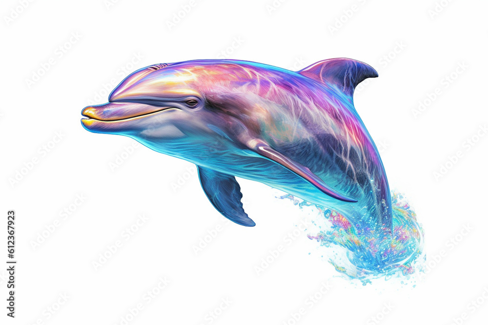 Papier peint A pastel-colored Dolphin with a majestic mane, rendered in soft hues of pink, purple, and blue, exuding a serene and regal presence