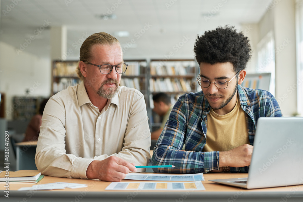 Papier peint Teacher teaching migrant of new language while they sitting at desk with laptop