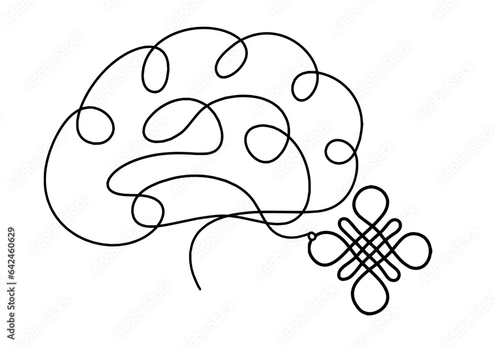 Papier peint Sign of endless auspicious knot with brain as line drawing on the white backgro