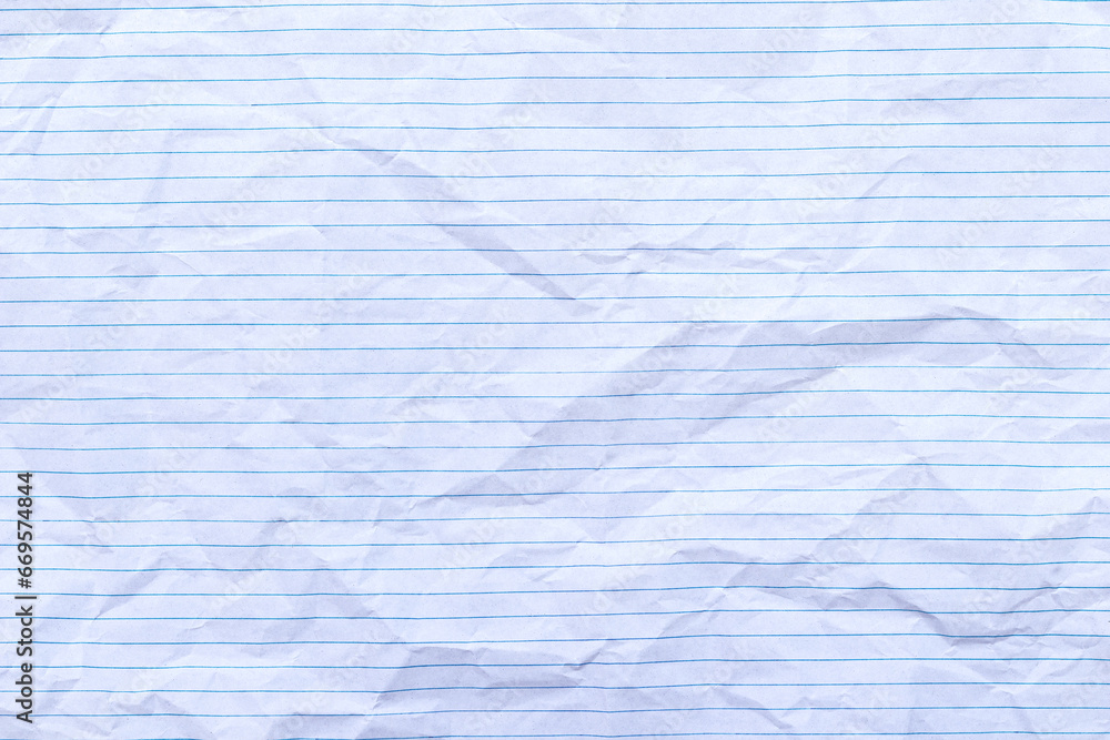 Papier peint Top view empty rumpled lined paper with wrinkled