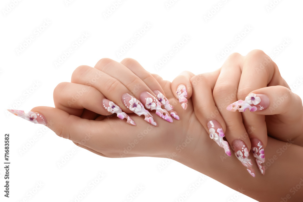 Papier peint Female hand with beautiful fingernails.Isolated.