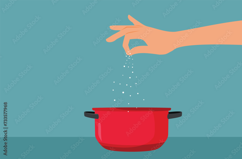Papier peint Cook Adding Salt to a Homemade Meal vector Cartoon illustration