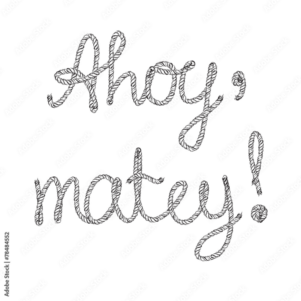 Papier peint Ahoy, matey! Rope lettering hand drawn vector illustration