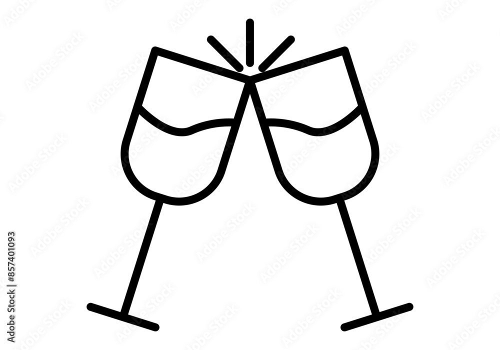 Papier peint Icono negro de dos copas brindando en fondo blanco