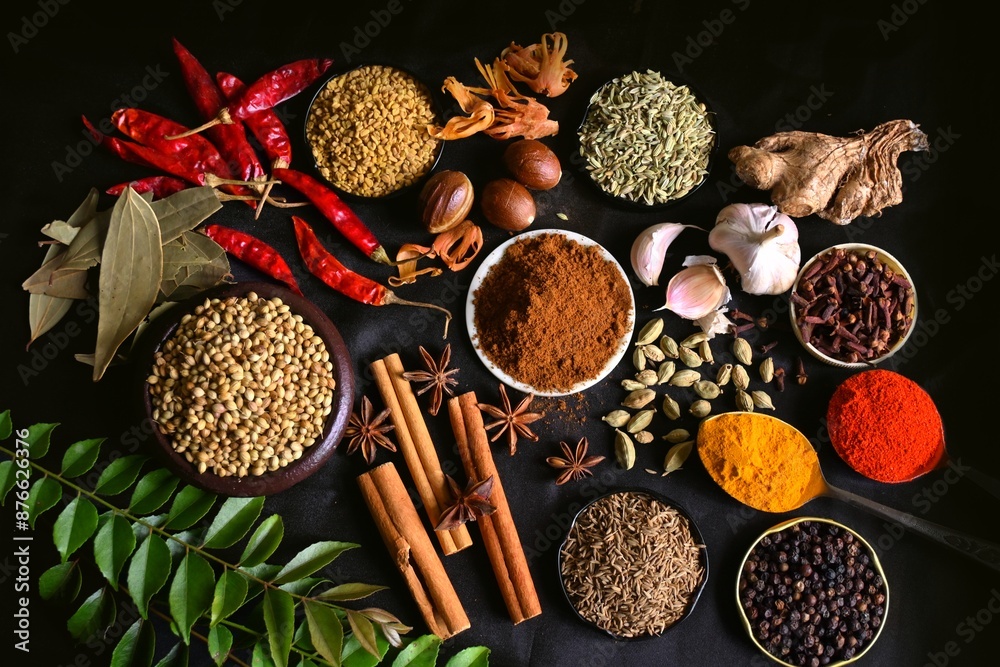 Papier peint Indian traditional whole spices, spice blend, garam masala ingredients