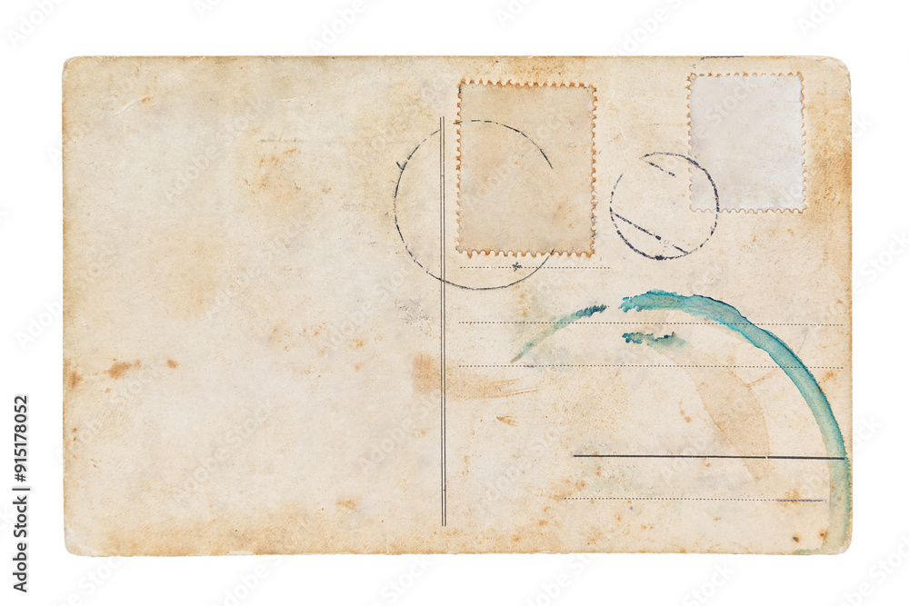 Papier peint Back of an old postcard isolated on white, including clipping path