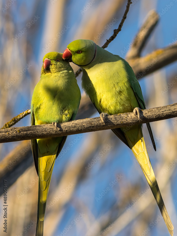 Tableau sur toile PAREJA DE COTORRAS DE KRAMER PSITTACULA KRAMERI