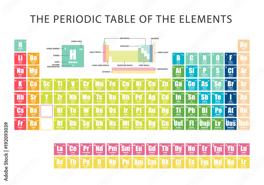 Tableau sur toile Tableau périodique des éléments montrant les enveloppes des électrons