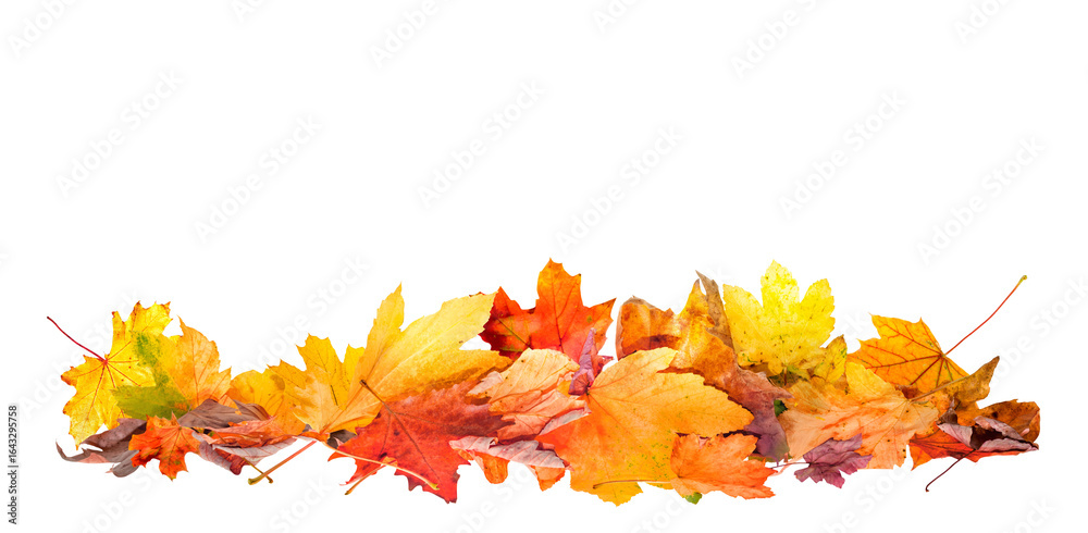 Tableau sur toile pile of fall leaves isolated, autumn natural background
