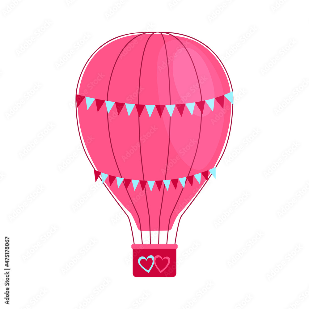Tableau sur toile Pink romantic aerostat with bunting of festive flags