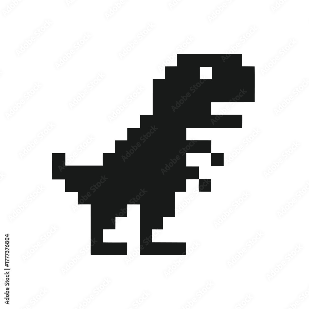 Tableau sur toile Pixelated Black Dinosaur Graphics on White Background 8bit Style