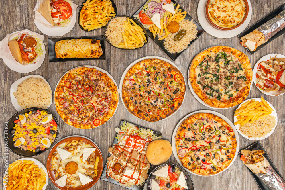 Tableau sur toile Pizza with pulled pork, BBQ sauce, crispy coleslaw, and fresh cilantro