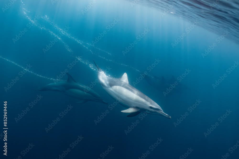 Photos Pod of common dolphins (Delphinus delphis) swimming in the Atlantic Ocean near t
