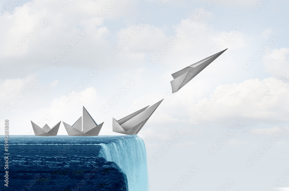 Photos Preparing For A crisis representing innovation to survive an impending problem through clever adaptation and transformation as a busuness success strategy concept woth origami paper sculptures