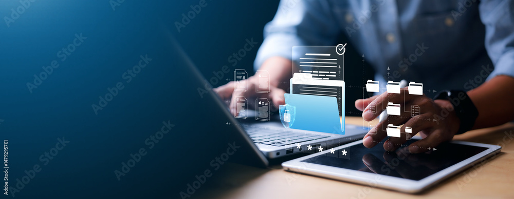 Tableau sur toile Privacy protection, secret secured lock, safety or security to archive file or document