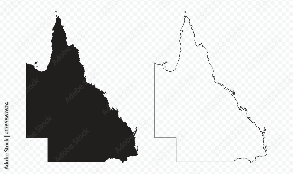 Photos Queensland state map silhouette and outline vector illustration on transparent b