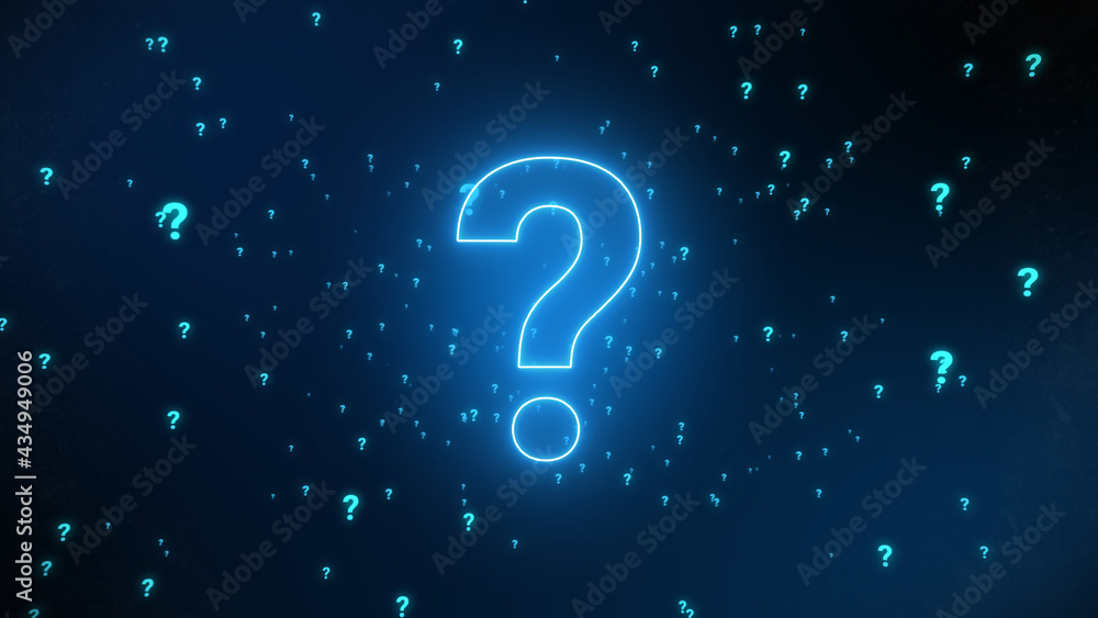 Question mark problem sign with particles flying in the background. Digital computer illustration