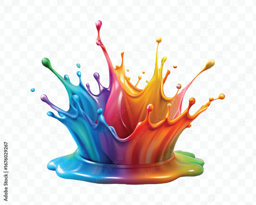 Tableau sur toile realistic 3d multi or rainbow color liquid paint splash isolated on transparent