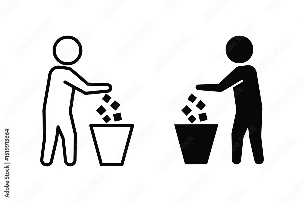 Tableau sur toile Recycle symbol icon set, man throwing garbage in bin, vector illustration, outli