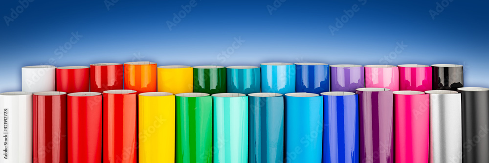 Tableau sur toile Row of various rainbow colored vinyl car wrapping or plotter cutting sticker foi